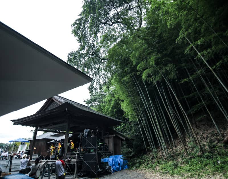 『森舞台』の愛称で親しまれているこの能舞台は、300年近い歴史と伝統を誇る「登米能(とよまのう)」のホームステージとして平成8年(1996)年にオープン。もと登米伊達家の御鍛冶屋(鉄砲鍛冶)屋敷跡地に、山裾の地形そのままの豊かな自然に抱かれて端正な佇まいを見せている。設計者は建築家隈研吾氏。鏡板の絵は日本画家千住博氏の制作。展示室はアートディレクター原研哉氏。平成9年日本建築学会賞受賞。